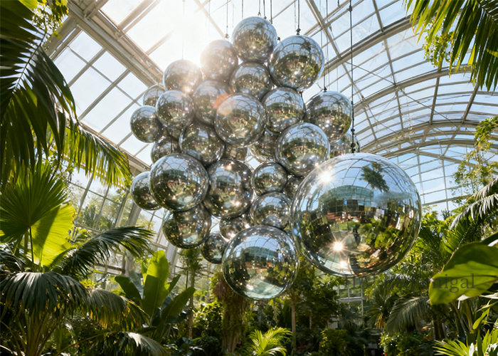W przeciwieństwie do balonów lateksowych, balonów foliowych lub plastikowych ozdób choinkowych, dwuwarstwowy, nadmuchiwany balon lustrzany PVC może być ponownie użyty i trwały oraz może wytwarzać efekt jasnego odbicia. |