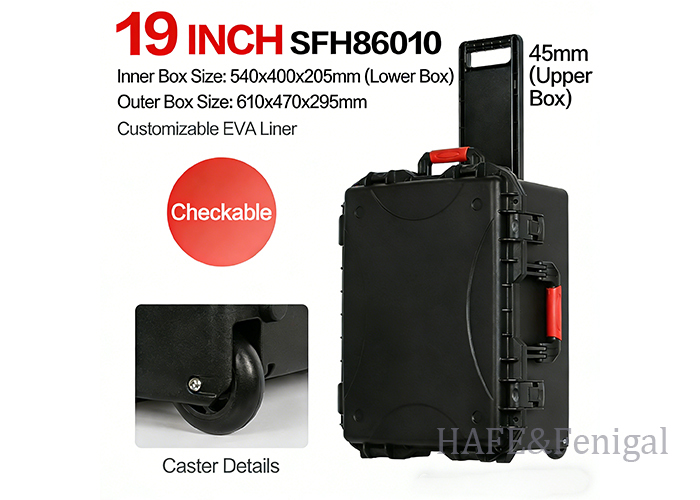 - Szczelne uszczelnienie i przenośność: Posiada solidne zatrzaski zapewniające niezawodne uszczelnienie. Opcje obejmują wygodne uchwyty do przenoszenia oraz zintegrowane kółka i teleskopowe drążki do łatwego transportu ciężkiego sprzętu.